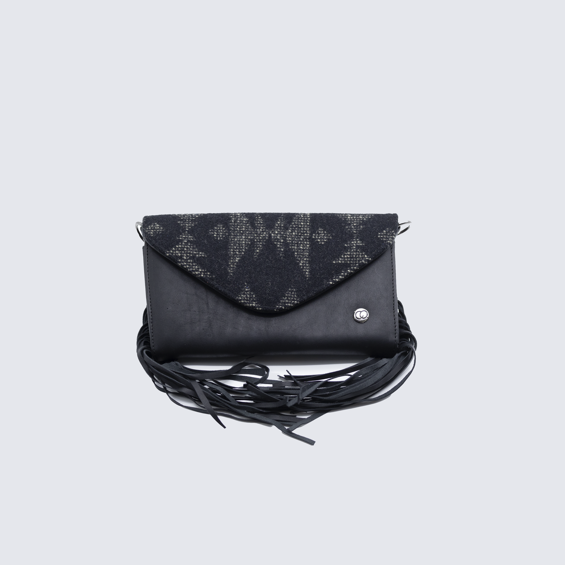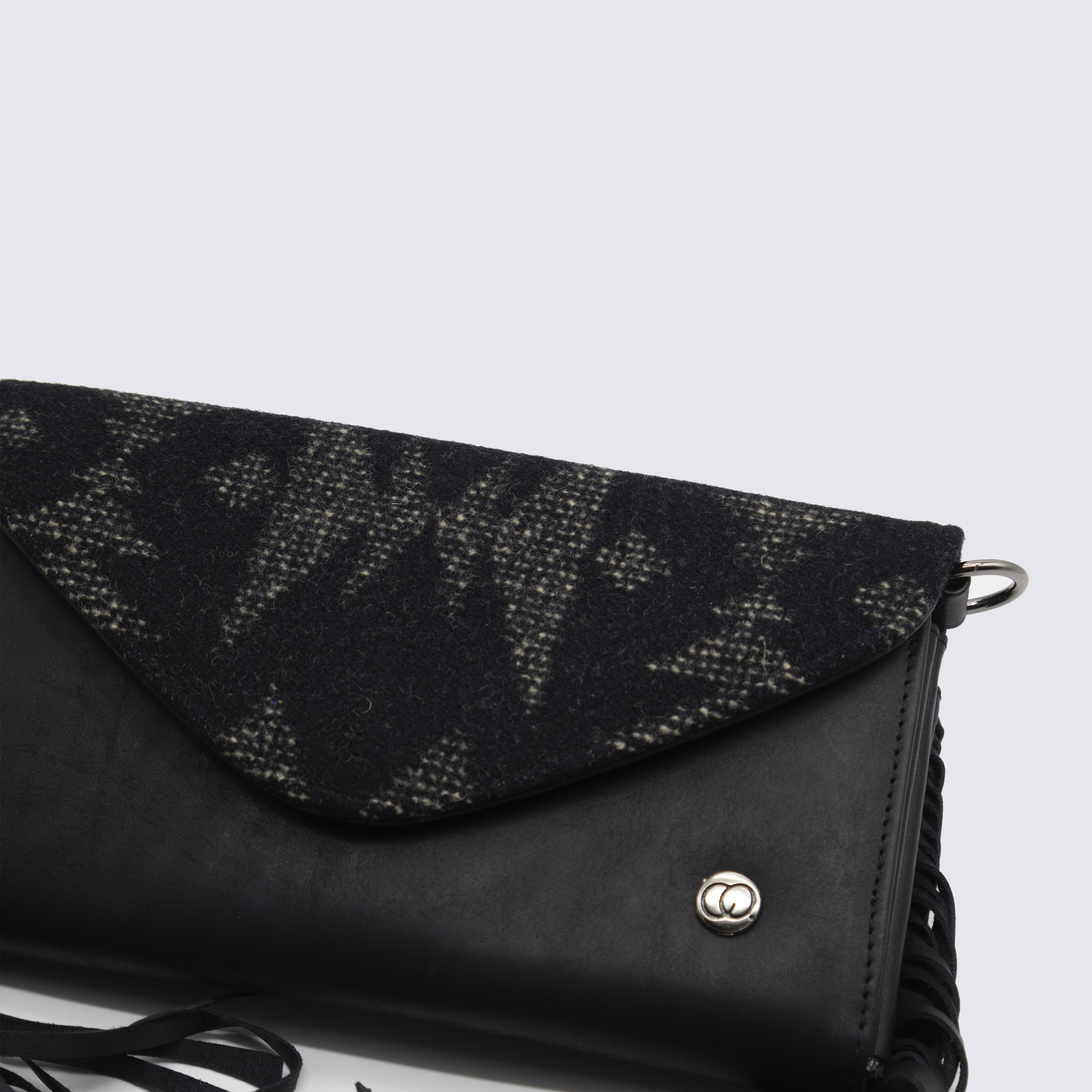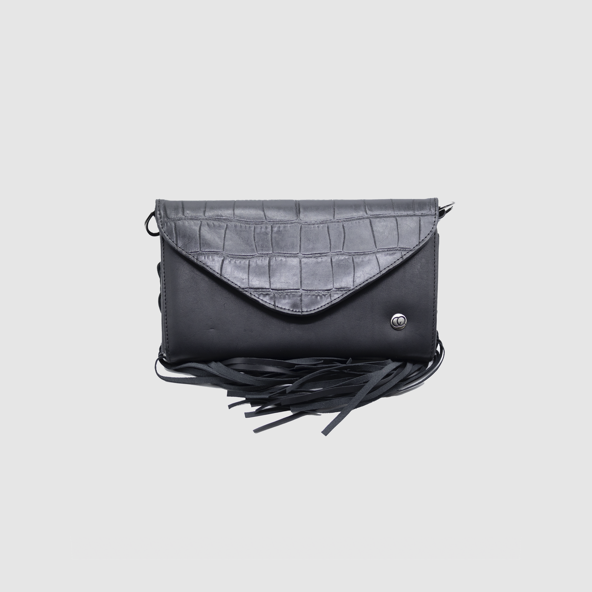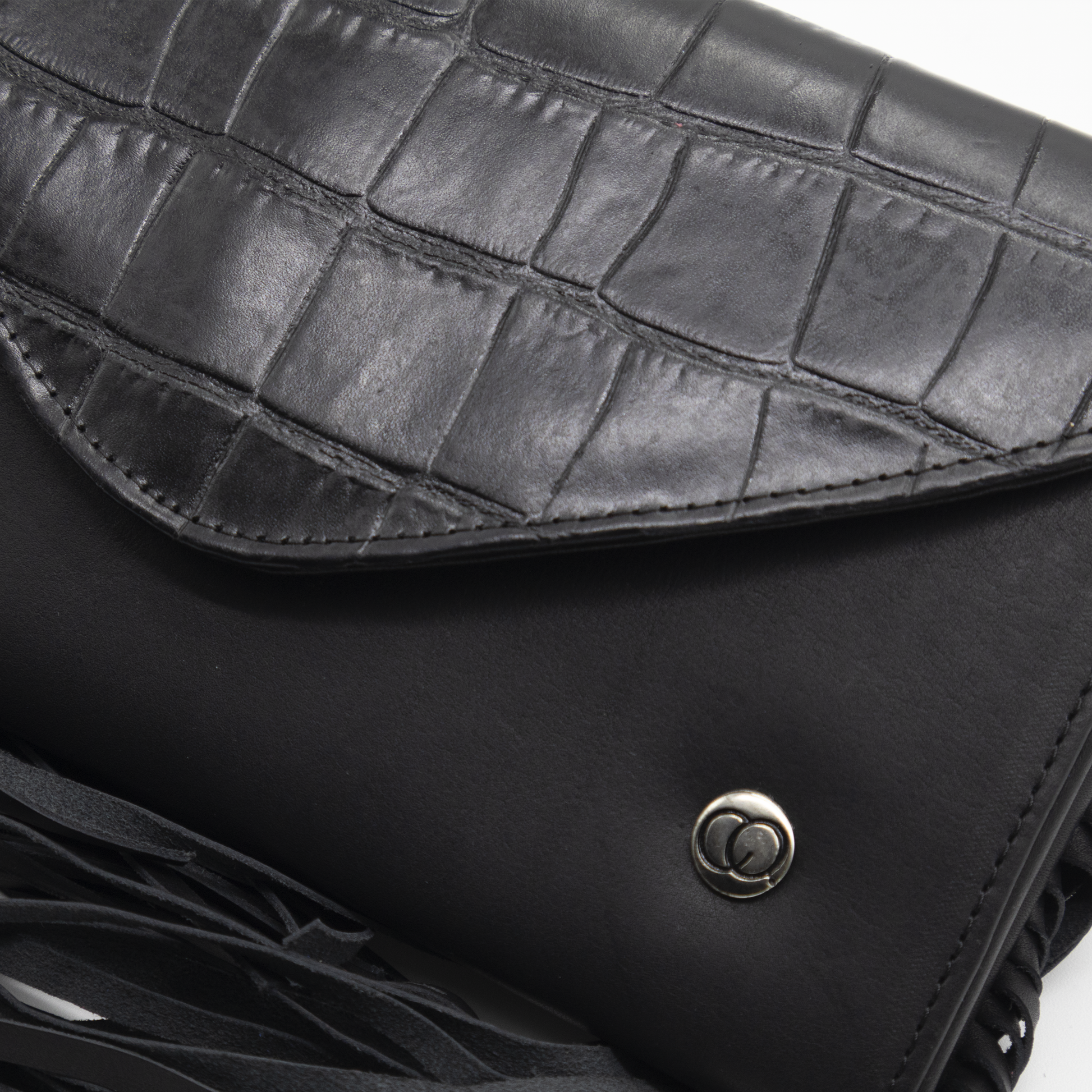 Bolsa tipo western con flecos y herraje metálico trabajado